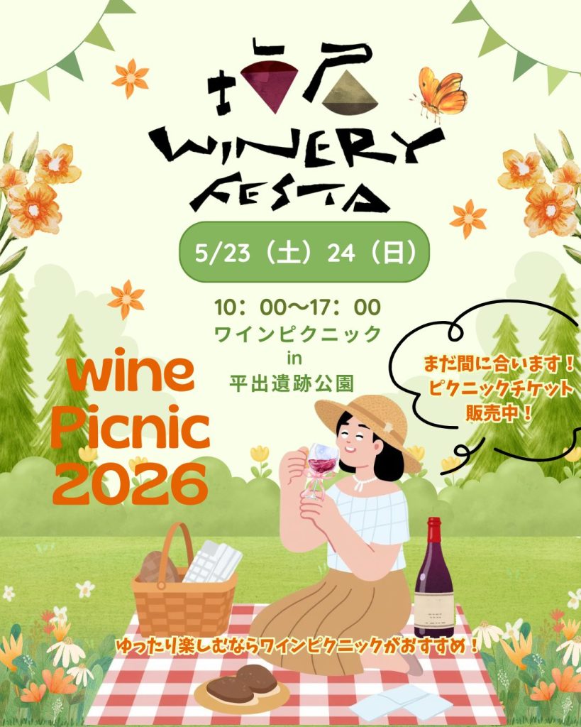 平出遺跡公園の開放的な空間で、好きなワインとフードを片手に思い思いの時間を過ごせます♪