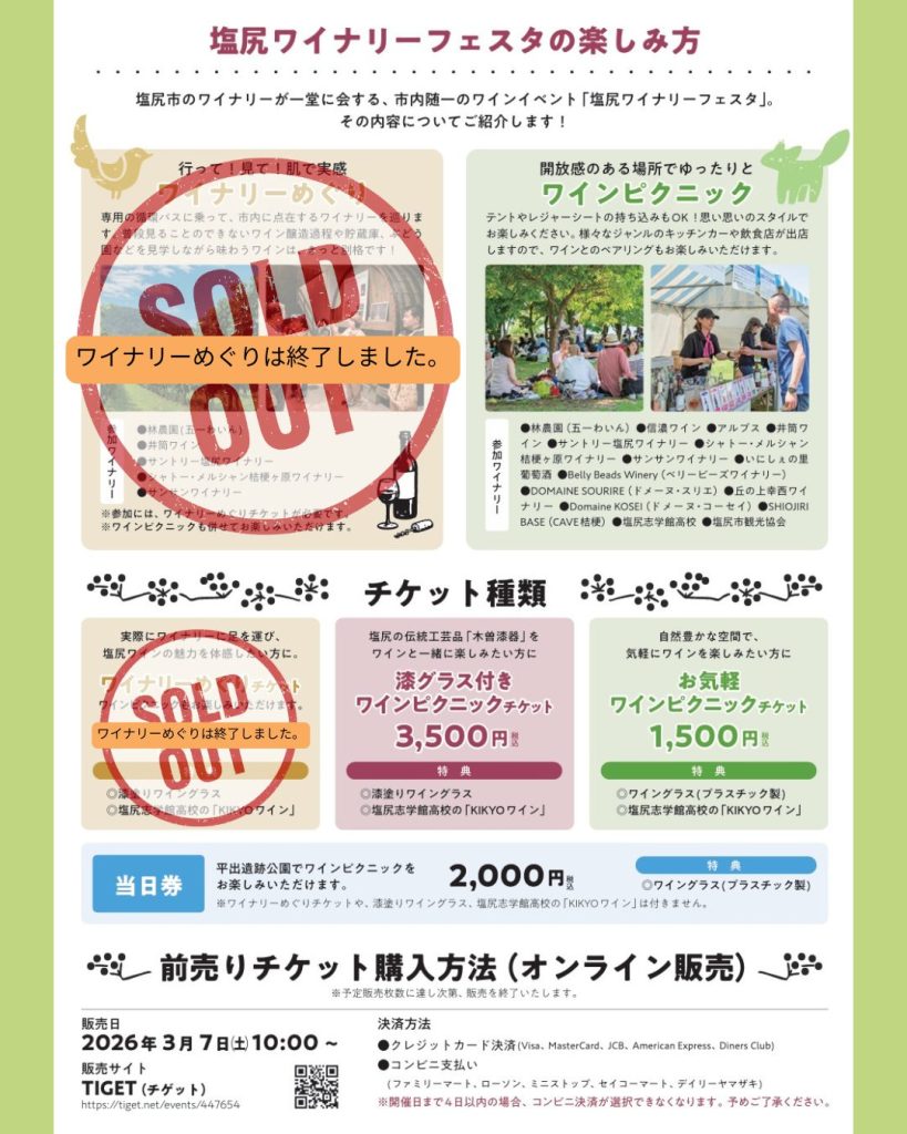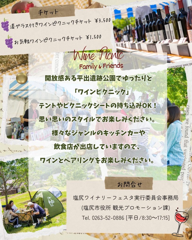 特典:ワイングラス(プラスチック製)、塩尻志学館高校「KIKYOワイン」の無料試飲